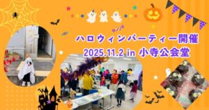 11月2日(土)、小寺公会堂にてハロウィンイベントが開催されました。 企画・主催は、神戸市西区で子どもがワクワクする遊びや、親子のふれあう時間を大切にしながら活動されている方々です。 「もっと小寺という場所を知ってほしい […]